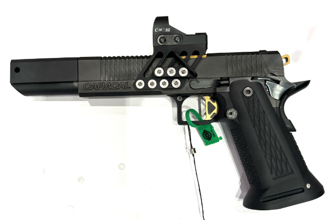 Caracal DS Versus Competition, 5,5" in 9 mm Luger und .38 Super Auto. Dieses Sportgerät entspricht dem Stand der Technik. Die Race-Gun muss sich zwar erst beweisen, aber die Anlagen, die am Messestand sicht- und fühlbar sind, könnten sich am Schießstand bestätigen. Es ist ein Vier-Kammer-Kompensator verbaut und alle Anbauteile stammen aus italienischer Quelle.