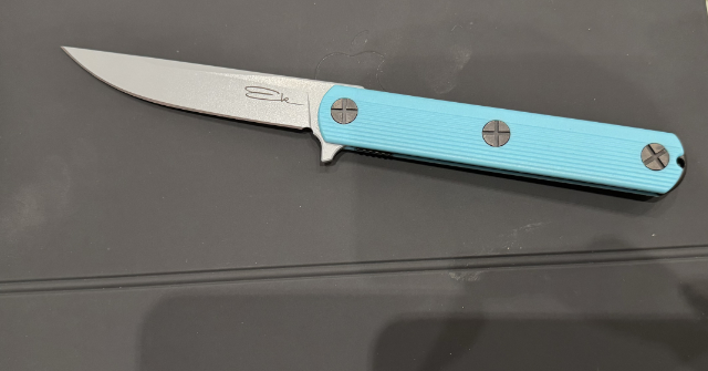 Neuheit für 2024 das Nemec: ein sehr schlankes Taschenmesser, leider für und in Deutschland für die Öffentlichkeit nur eingeschränkt geeignet. Eventuell ist aber ein feststehendes Messer in dieser Form geplant, welches unserer Gesetzgebung entsprechen wird.